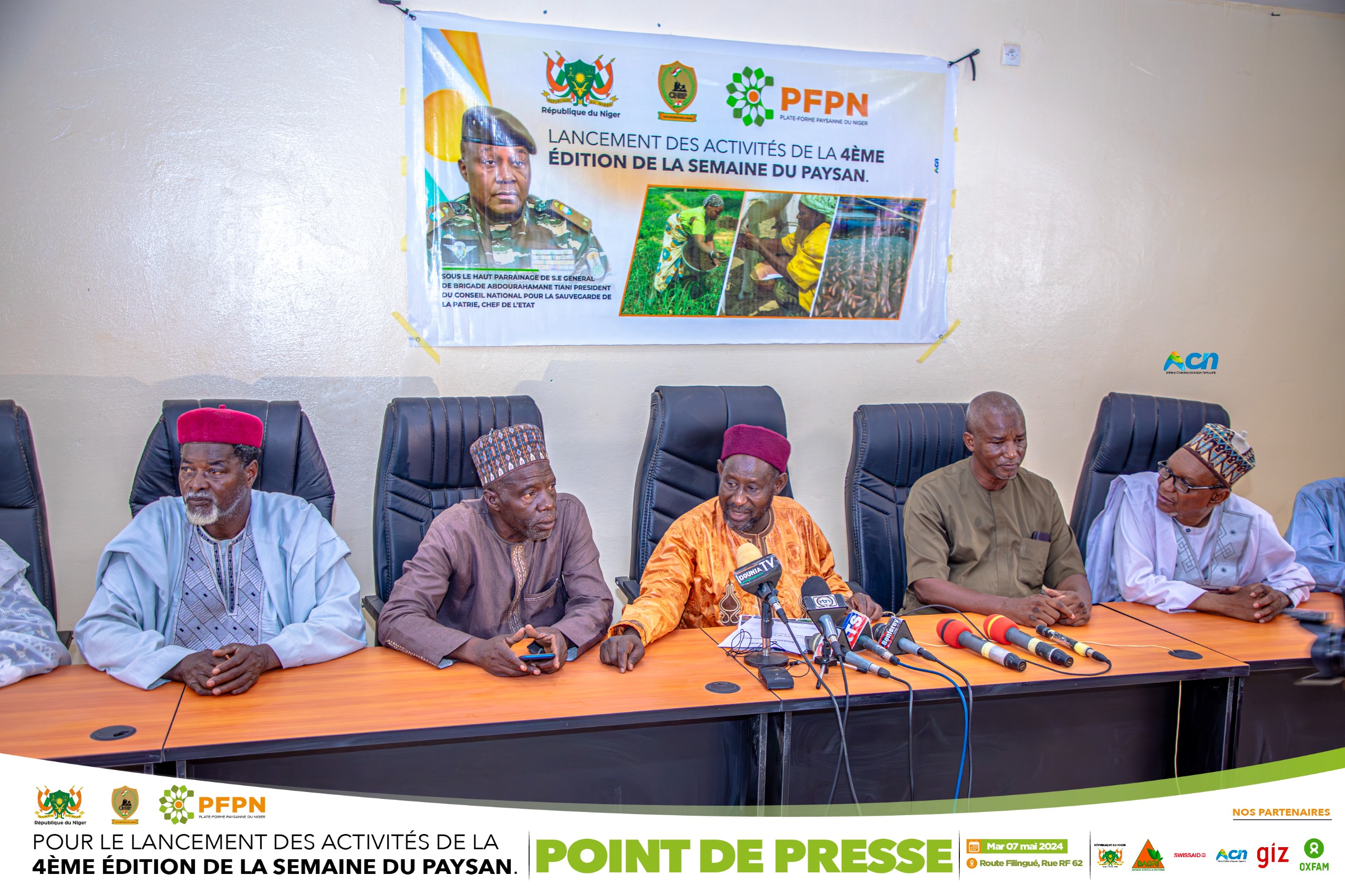 La Plate-Forme Paysanne du Niger (PFPN) a tenu un point de presse le mardi 7 mai 2024 dans ses locaux pour annoncer le lancement des activités de la 4ème Edition de la ”Semaine du Paysan”. Cet événement se déroulera du 20 au 23 mai 2024 à la ”Maison du Paysan” de Margou-Béné, dans la Région